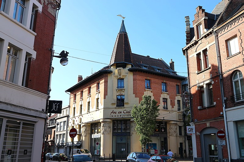 Architecte Marcel Gillon ontwierp de huizen op de onpare kant van de rue d’Arras, onder meer de Librairie Levaast (uithangbord in mozaïek en bloemenmandmotief op het balcon) en de Librairie Beuvry-Berthe, ook al met uithangbord in mozaïek.